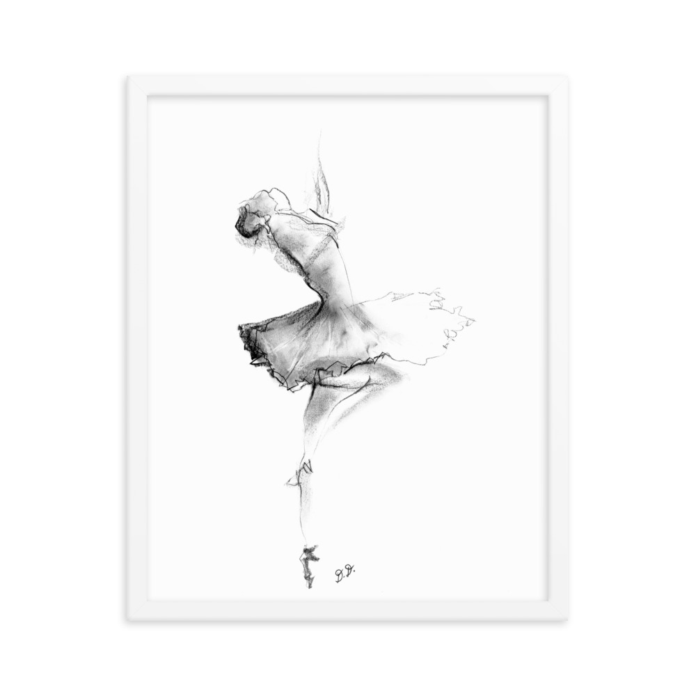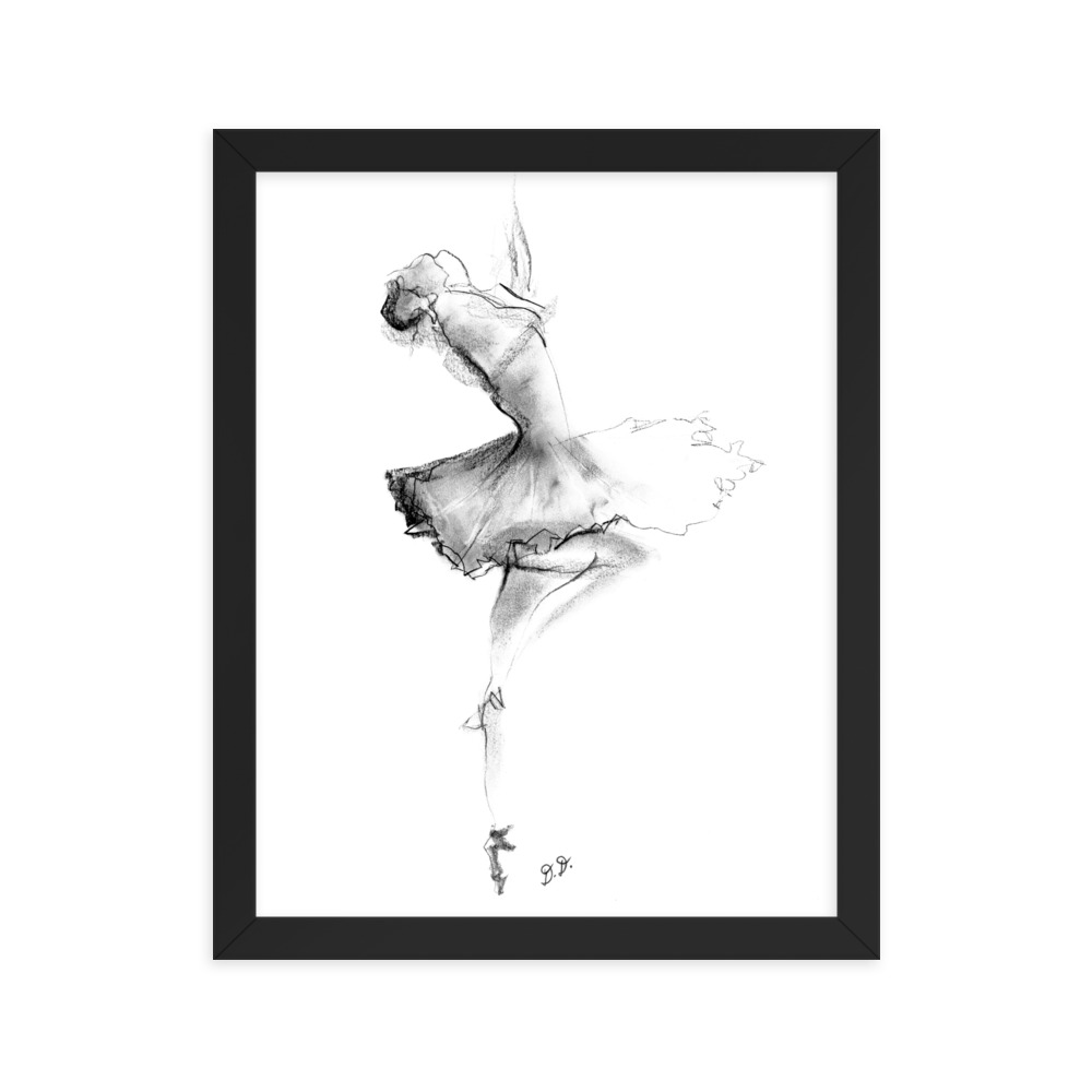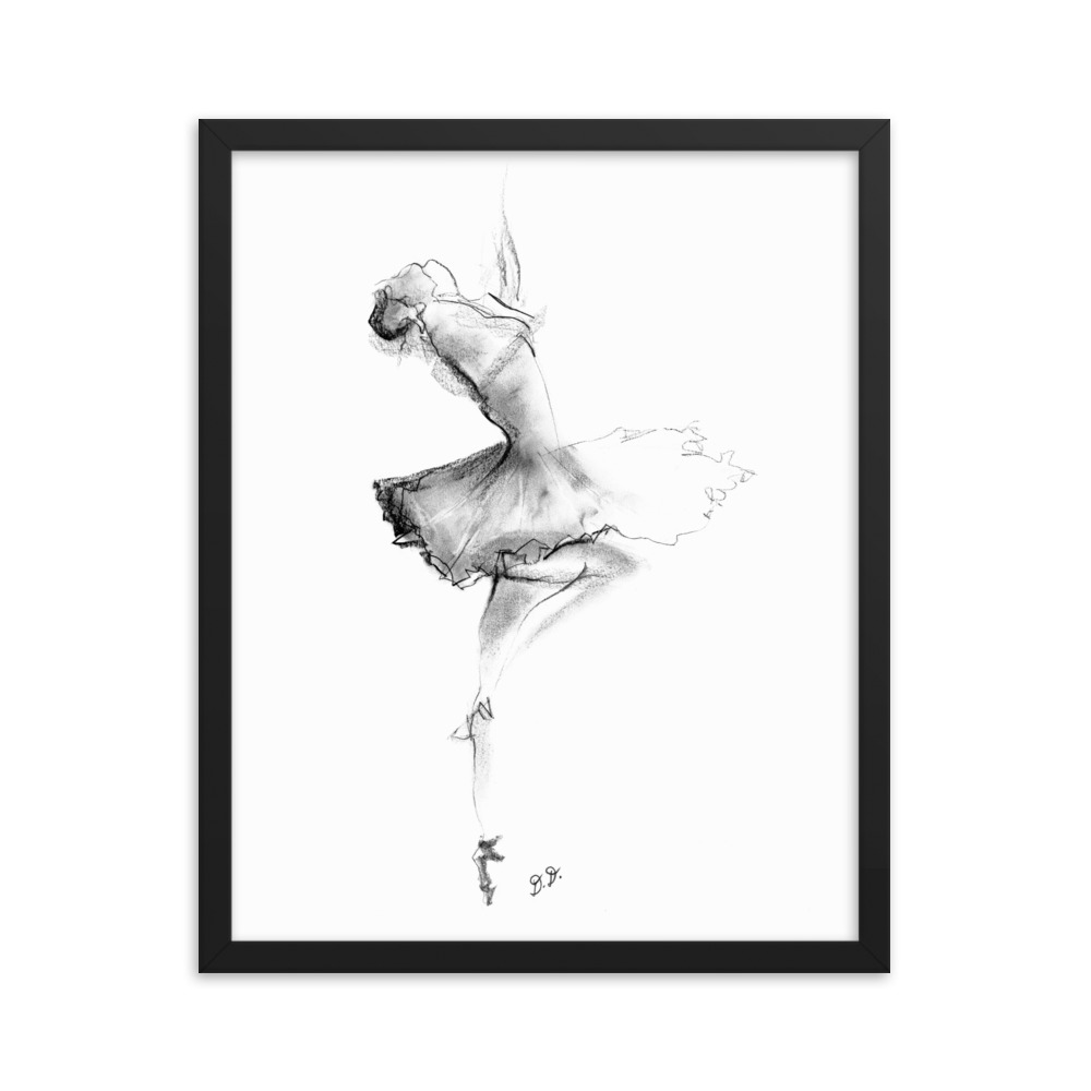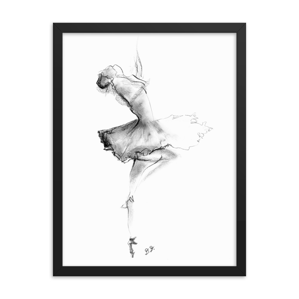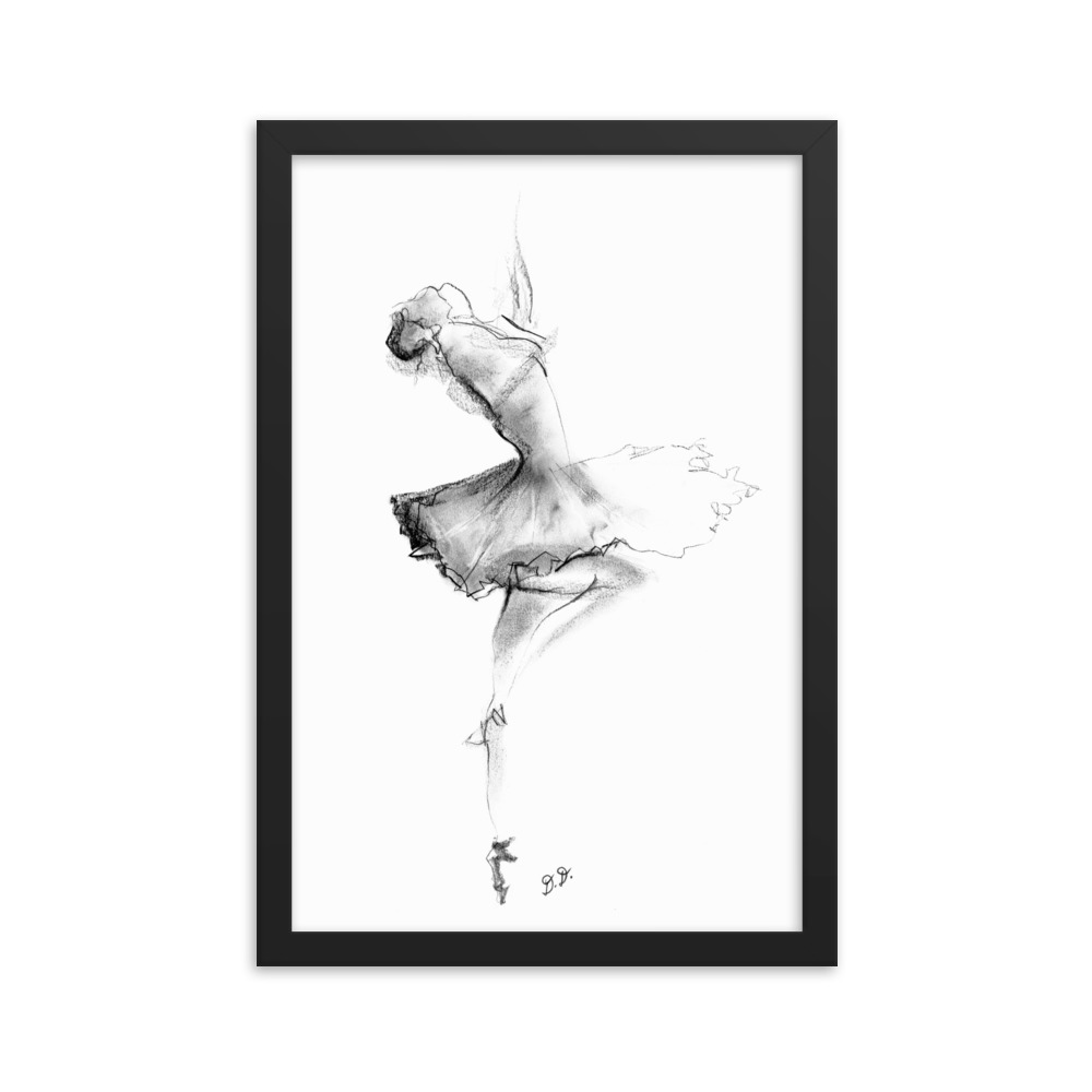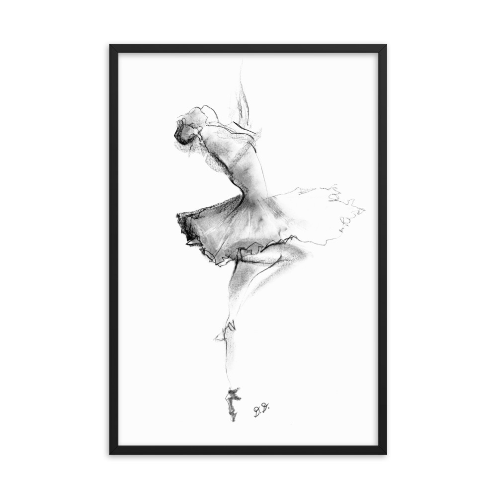 ‘Ballet Dancer’ Abstract CHarcoal Framed poster